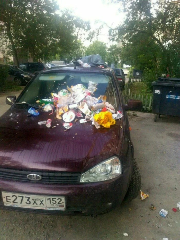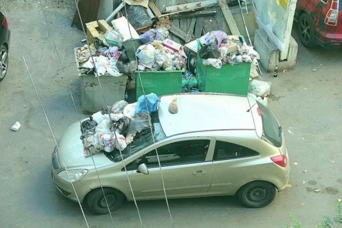 Если вы паркуетесь рядом с мусорным баком таким образом, что пройти к нему невозможно, ждите, что весь мусор жителей жилого комплекса окажется на капоте вашего автомобиля. И тут уж придется вам самим выкидывать его в мусорный бак. Мерзость та еще.