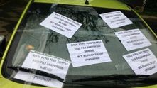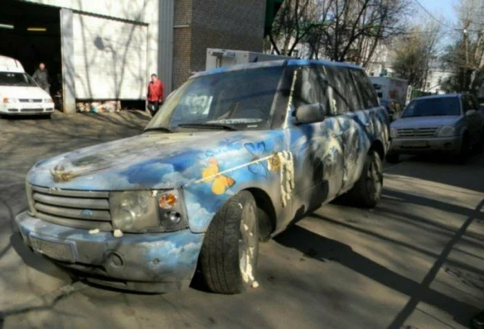 Эти две девушки-водители также получили понятное предупреждение. Первая явно загородила выход с детской площадки, а вторая поставила свой автомобиль на тротуар. Жители оторвались от души, закрасив не только кузов, но и стекла с фарами.