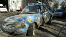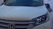 У следующих трех повреждения еще сильнее. У Opel разбито лобовое стекло и сильно помят капот, а у Honda CR-V - лобовое и боковые стекла, фары, оторвано зеркало. Кажется, этим досталось за дело: Opel припаркован прямо возле подъезда, а Honda, кажется, стоит на пешеходной дорожке.