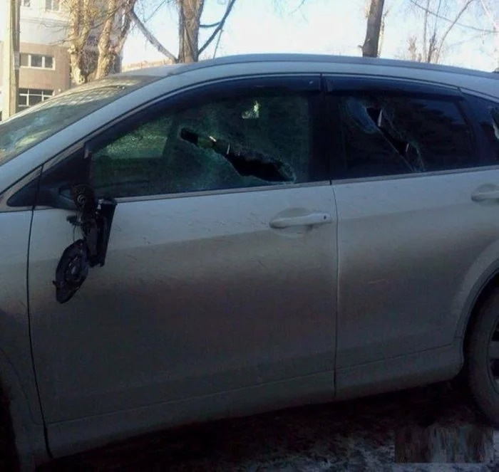 Этим трём автовладельцам жители разбили лобовые стекла самыми разными предметами, начиная от огромного камня и заканчивая лавочкой.