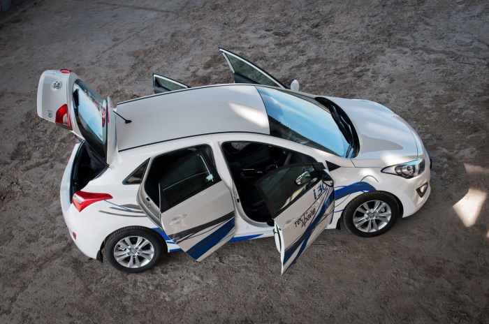 Естественно, большинству хватит и 100-сильного агрегата, и для таких водителей Hyundai может предложить целую бочку приятных сюрпризов. Плавность хода – великолепна, что, впрочем, совсем неудивительно – это всегда было визитной карточкой компании Hyundai. Еще приятнее это становится, если учитывать тот факт, что и рулится машина на таких режимах очень даже неплохо. Кстати, дорогие комплектации i30 оснащены электроусилителем с регулировкой усилия на руле Flex Steering. Нажимаешь кнопку, и руль наливается тяжестью. Забавно, но бестолково. Обратной связи с дорогой не прибавляется, ощущения, как будто рулишь ложкой в стакане со сметаной. И все равно, в любом из режимов машина ведет себя более чем достойно, покорно повинуясь желаниям водителя. Тут главное не забывать, что ты не в кресле спорткара. Не буду раскрывать все секреты, но добавлю, что машина забавно прощается с вами, каждый раз, когда вы вытаскиваете ключ из замка. И это может зарядить вас хорошим настроением на целый день.