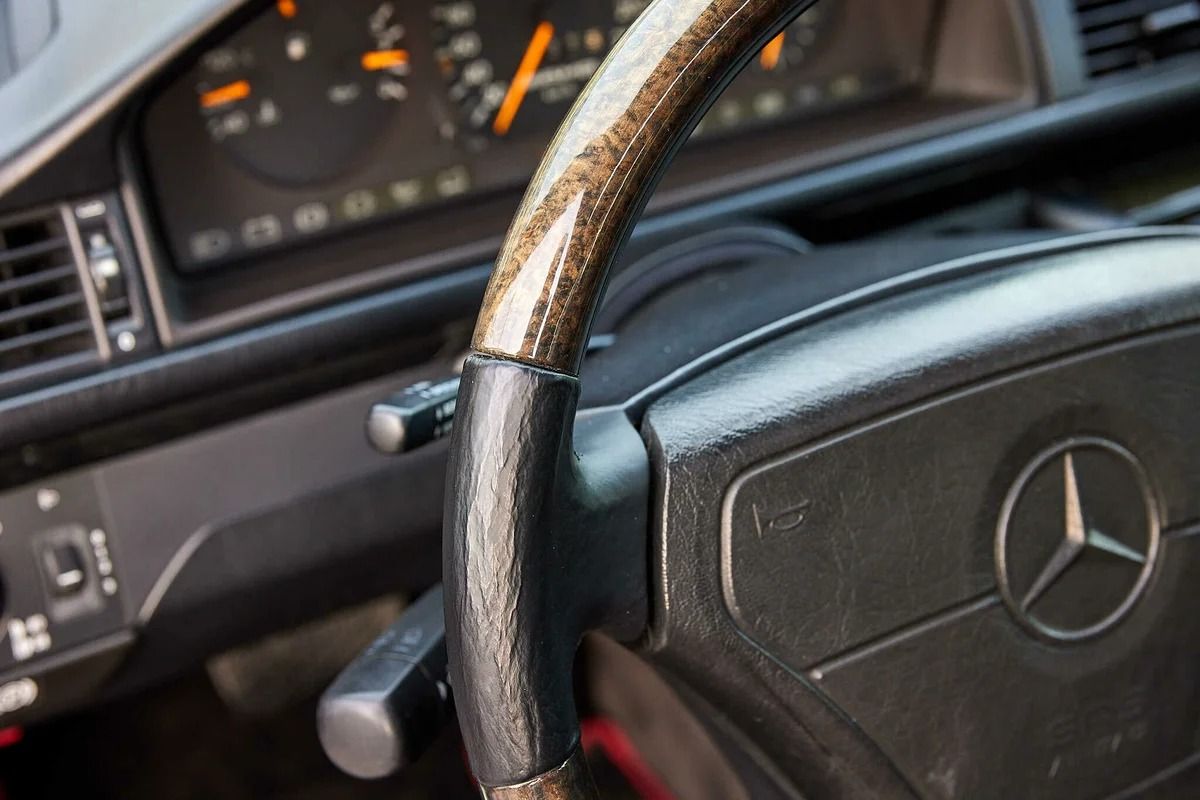 Коллаборация двух автогигантов длилась недолго — W124 E 500 выпускался с 1991 по 1994 год. А в последний год производства на свет появилась особенная версия — Limited Edition. Она отличалась от обычной версии еще более уменьшенным дорожным просветом и оригинальной отделкой салона деревом и натуральной кожей двух оттенков. По разным данным, с конвейера успело сойти от 500 до 950 экземпляров авто лимитированной серии. И выставленный на продажу «Мерседес» — как раз один из них. По словам продавца, принадлежность автомобиля к редкой серии подтверждена документально.