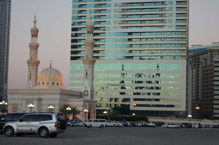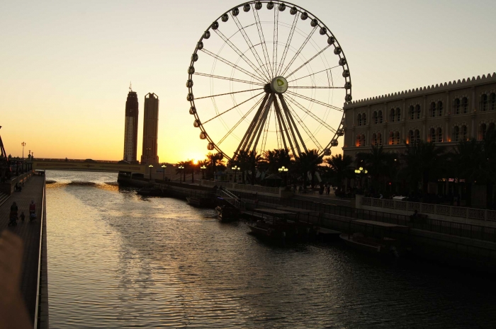 Вечером последнего дня , после сбора вещей , съездили недалеко от отеля на территорию развлекательного центра Sharjah Al Qasba . К сожаленью все было уже закрыто и мы сделали последние красивые фото «на закате» попрощались с Арабскими Эмиратами образца 2012 года.