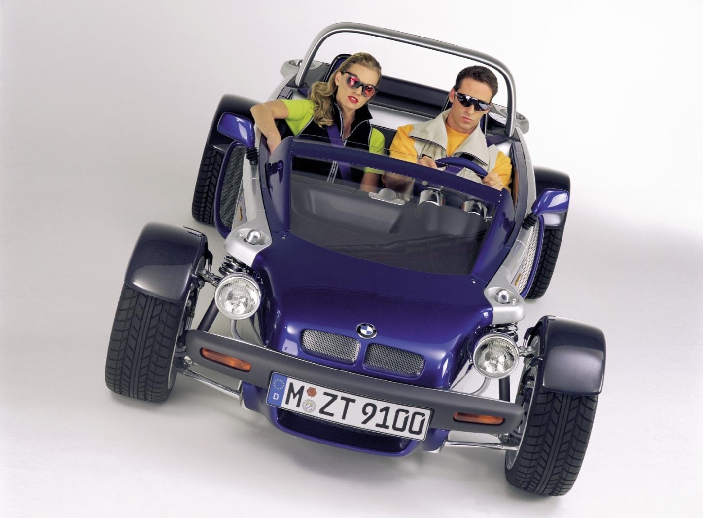 Z18 разработала BMW Technik GmbH — та самая команда, которая создала Z1 с его убирающимися дверями. Выглядел он так, будто вырвался из фантастического раллийного фильма: поднятый багги с фирменной «лицом» BMW середины 1990-х, невероятно короткими свесами, массивными внедорожными шинами и полным отсутствием крыши.