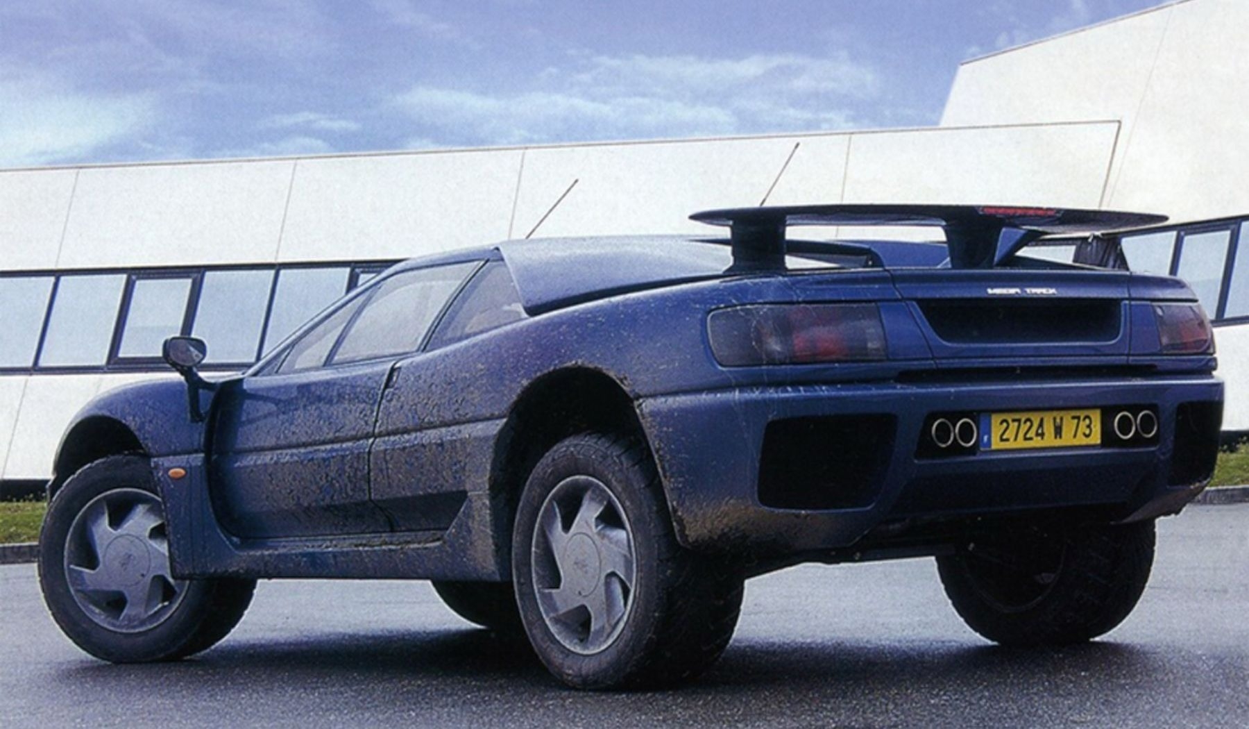 Завершённый в 1992 году и представленный на Парижском автосалоне того же года, необычный суперкар получил название Mega Track.
