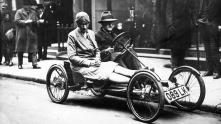 20 — Доктор Манфред Карри рядом со своим изобретением — Curry-Landskiff. Этот веломобиль был способен развивать скорость до 55 км/ч.