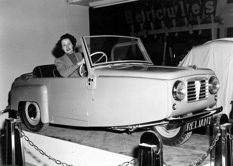 38 — Четырёхместный Reliant Regal, произведённый компанией Reliant Engineering Co., на выставке Cycle and Motor Cycle Show в Лондоне.