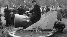 26 — Лорд Брабазон, британский пионер авиации, демонстрирует ховер-скутер в Лонг-Диттоне, графство Суррей.