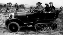 14 — Бронированный автомобиль Sizaire-Berwick Wind Wagon времён Первой мировой войны. Фотография сделана на трассе Бруклендс. Автомобили остнастили пропеллером для увеличения скорости.