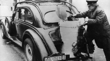 12 — Автомобиль Adler Diplomat, построенный в Германии в 1936 году, с двигателем, работающим на древесном топливе вместо бензина, установленным во время Второй мировой войны.