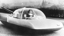 23 — Концепт Simca Fulgur, созданный французской компанией Simca. Предполагалось, что он будет работать на атомной энергии, управляться радаром и передвигаться на двух колёсах с гироскопической стабилизацией на скорости свыше 150 км/ч.