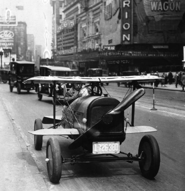 45 — Автомобиль с крыльями и пропеллером на Таймс-сквер, Нью-Йорк, 1924 год.