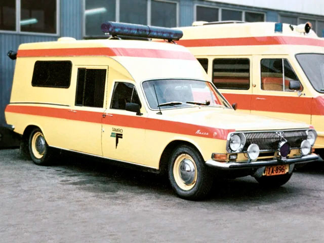 Финская компания Tamro известна своими реанимобилями на шасси RAF. Но они также выпустили несколько штук подобных санитарных автомобилей на базе ГАЗ-24-02. Колесная база удлинялась, а крыша значительно повышалась для увеличения внутреннего пространства.