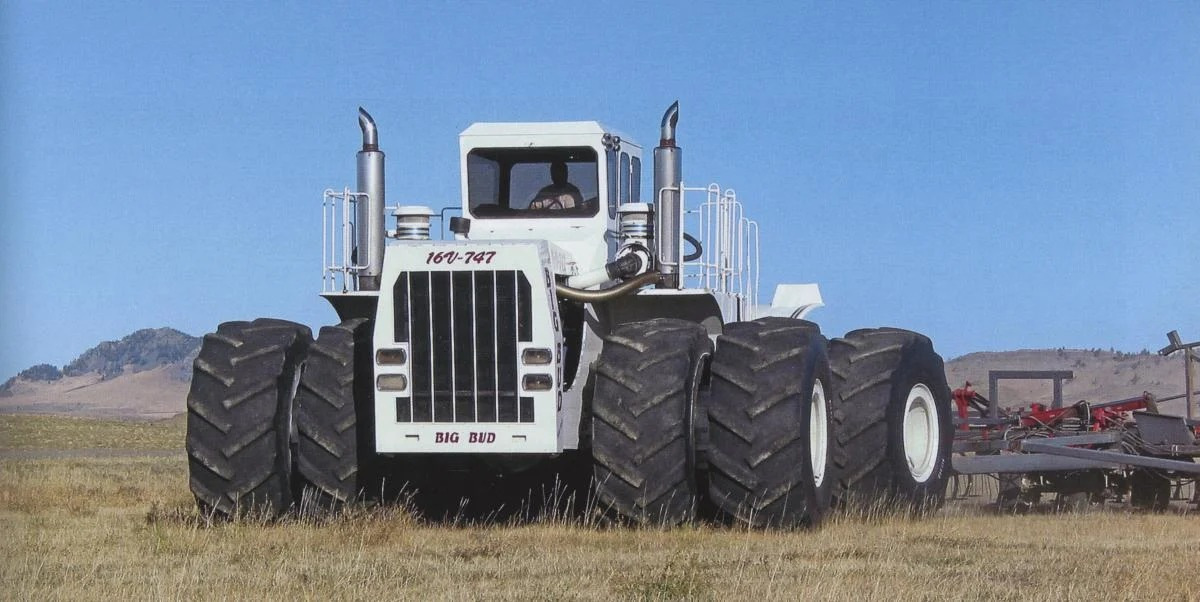 Но лидером среди тракторов по мощности с огромным отрывом является могучий Big Bud 747. Его сделали в 1977 году, и он до сих пор является самым большим сельскохозяйственным трактором в мире. А еще самым мощным.