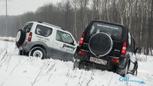 Даже в обычных дорожных условиях 1.3-литровый движок, журча своим «табуном» из 85л.с., без проблем перемещает Jimny по городскому потоку, совершенно не заставляя чувствовать себя ущербным. Что же говорить про заснеженные дороги, на которых этот малыш с легкостью выигрывает спринтерские забеги со светофоров. Несколько раз мы ловили немного восхищенные, но, скорее, непонимающие взгляды водителей среднеразмерных кроссоверов. Они так не могут!
