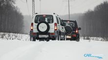 Но настоящий рок-н-ролл начинается, как только вы съезжаете с проторенных дорог. Мы решили совершить наше внедорожное путешествие и пересечь одну из лесозон по просеке вдоль ЛЭП. Эта идея, изначально показавшаяся гениальной и будоражащей, нашла некоторое сопротивление со стороны матушки-погоды. Усилившийся снегопад завалил и без того рыхлый снег еще более мягким покровом, заставляя автомобили закапываться каждые пару метров.
