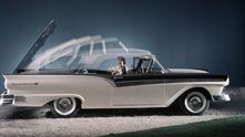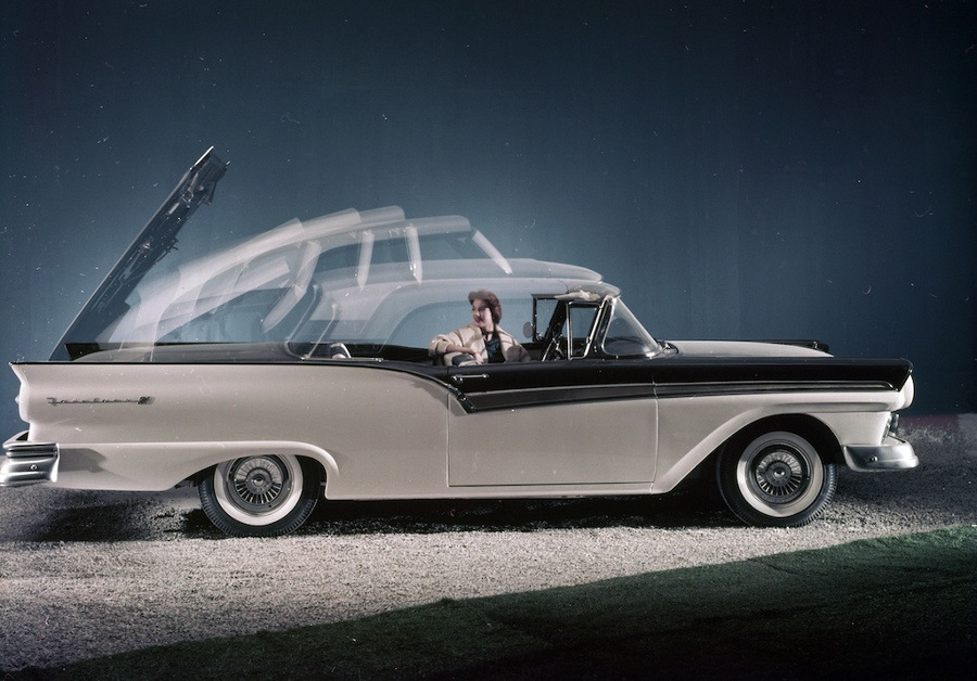 Пройдет еще около четверти века, прежде чем жесткий убирающийся верх вернется на Ford Fairlane 500 Skyliner 1957 года. Конструкция получилась очень сложная и включала 10 реле, 10 концевых выключателей, восемь автоматических выключателей, семь электродвигателей и не менее 180 метров (!) проводки. Не удивительно, что у такого верха были проблемы с надежностью, хотя Ford все же удалось построить почти 50 000 Skyliners в течение трех лет.