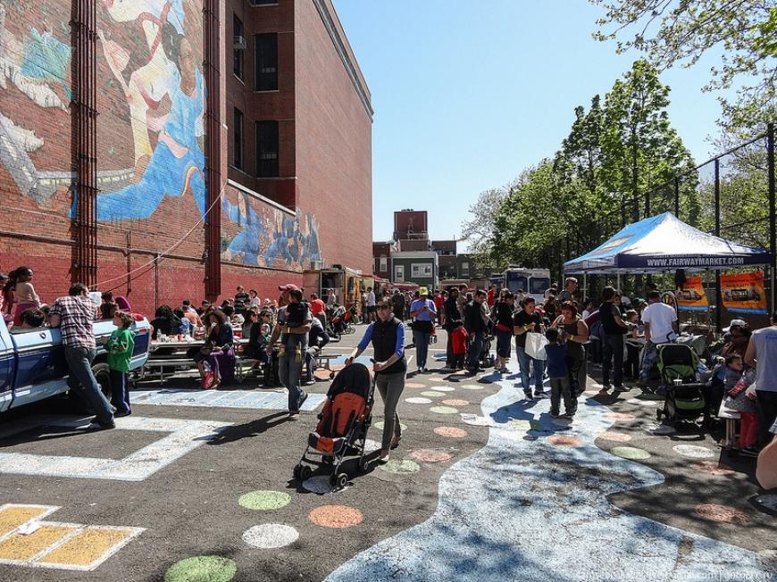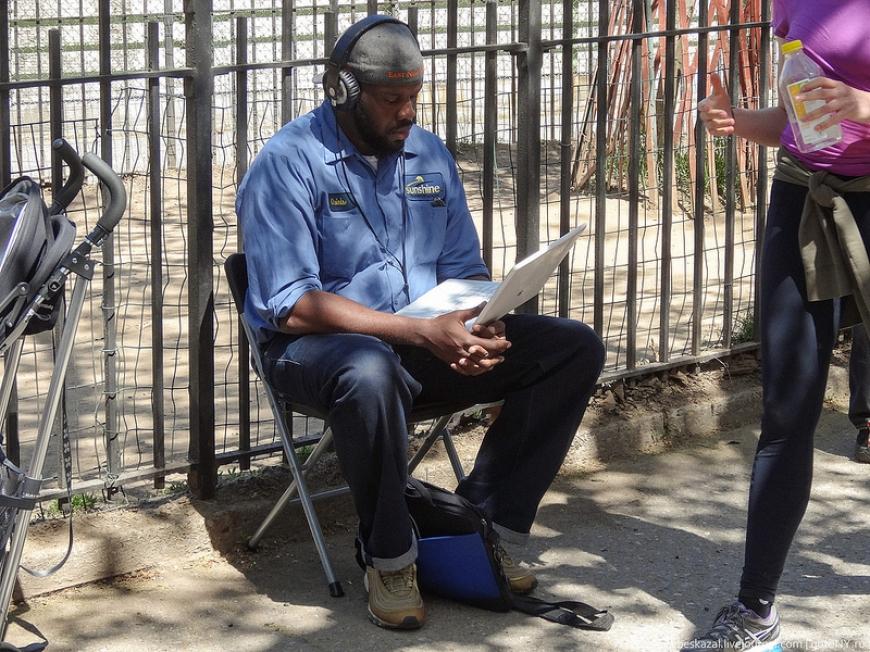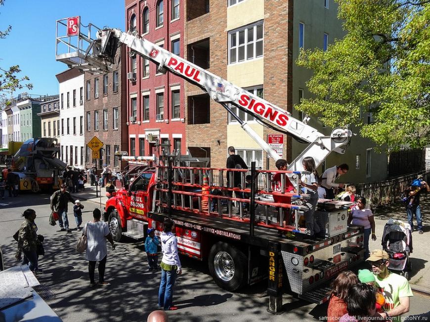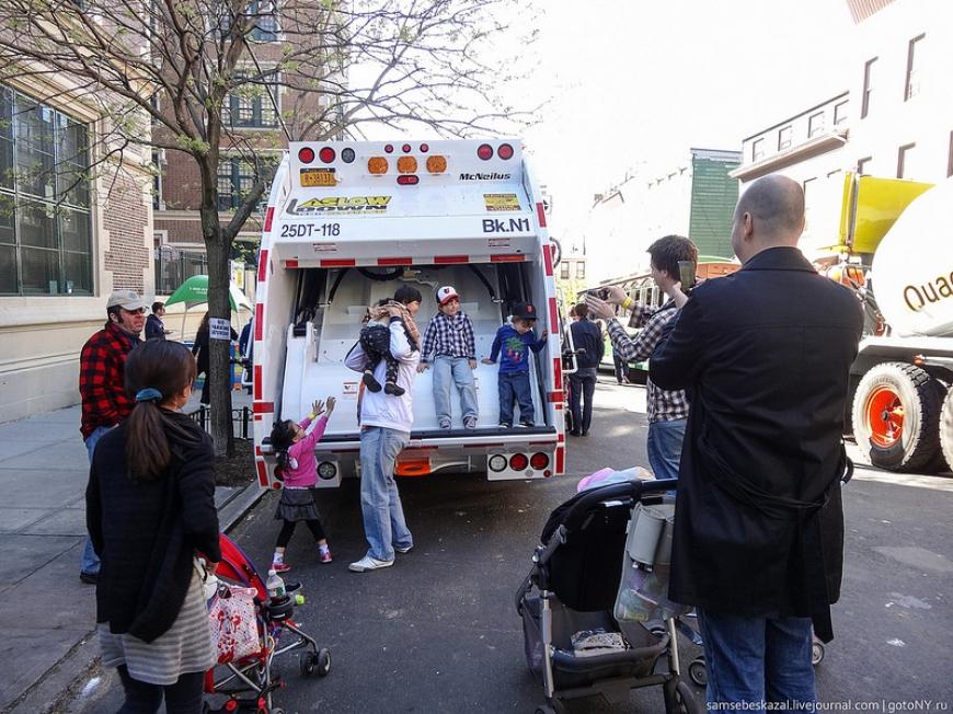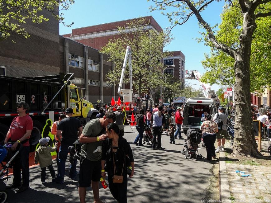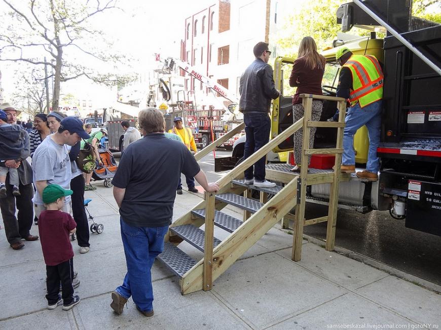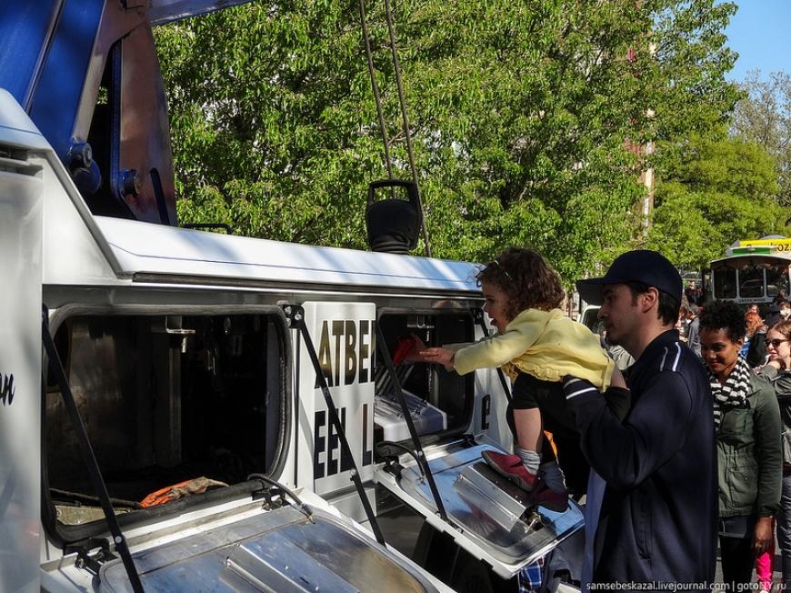 Кормили классическим нью-йоркским способом. На место приехала куча грузовичков-кухонь, которые продавали все, начиная от греческих шашлычков и заканчивая вафлями. Мы купили 2 яблока, 2 апельсина и 2 банана и одну бутылку воды. Отдали за все 2 доллара.