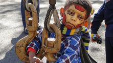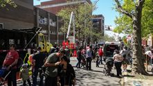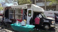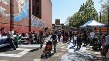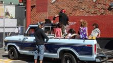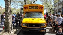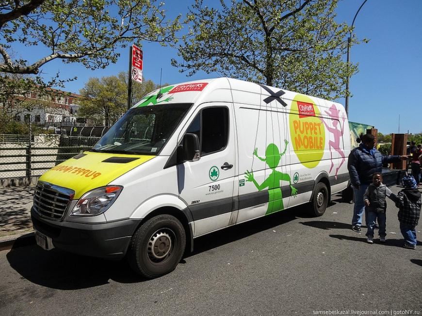Передвижной кукольный театр департамента парков Нью-Йорка, который ездит по городским паркам с бесплатным кукольным представлением для детей.
