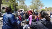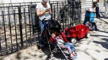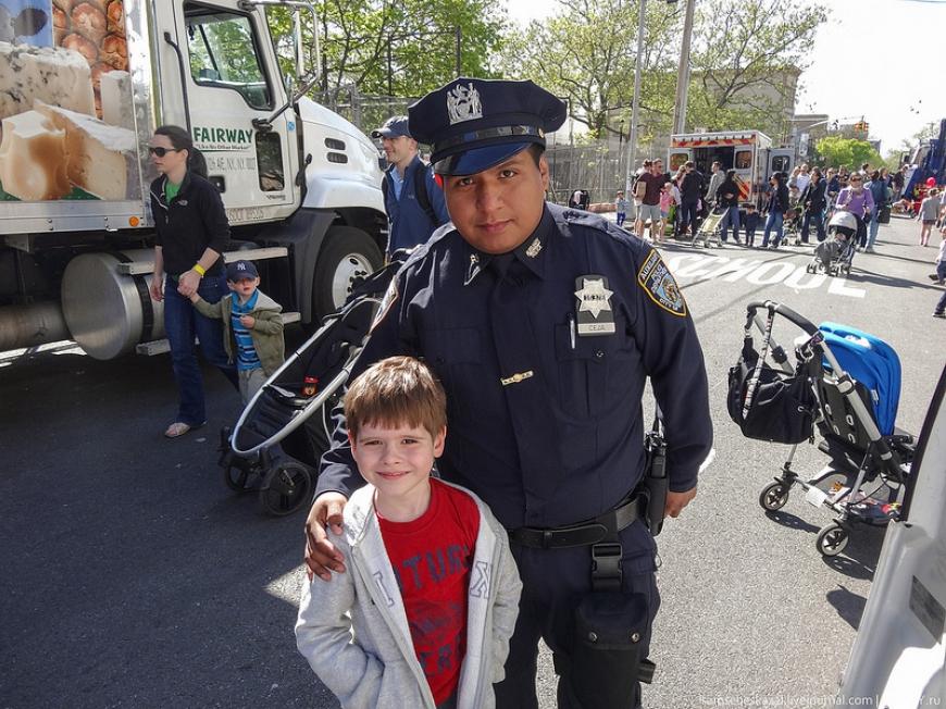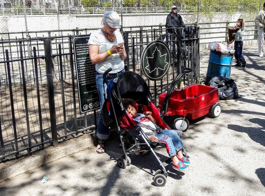 Не редкая для Нью-Йорка картина, когда у белой мамы черный ребенок. Еще тут почему-то любят возить детей в колясках до довольно приличного возраста.