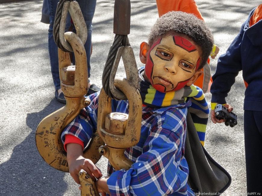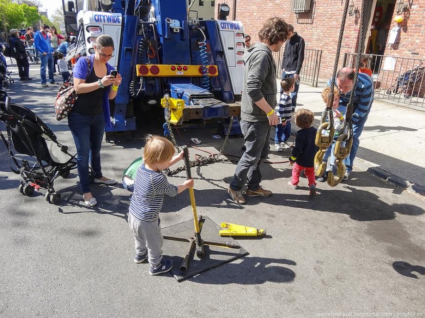 Пока стояли в очереди я подивился отношению к детям. Позади эвакуатора были разложены разные инструменты, типа огромного балонника или огромной кувалды. На тросах болтались два тяжеленных крюка. И дети со всем этим играли. При этом никто из взрослых не бегал и не пытался их оберегать. Мне кажется, что я там волновался больше всех остальных. А вдруг он уронит на ногу кувалду, А вдруг получит по башке крюком?