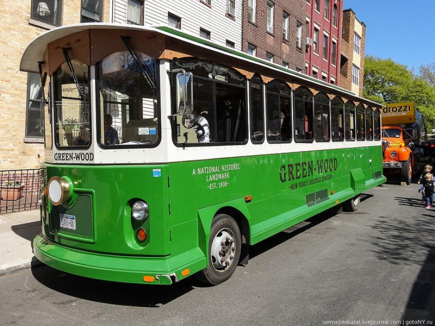 Кладбищенский экскурсионный автобус. Это не шутка. Автобус работает на Гринвудском кладбище.