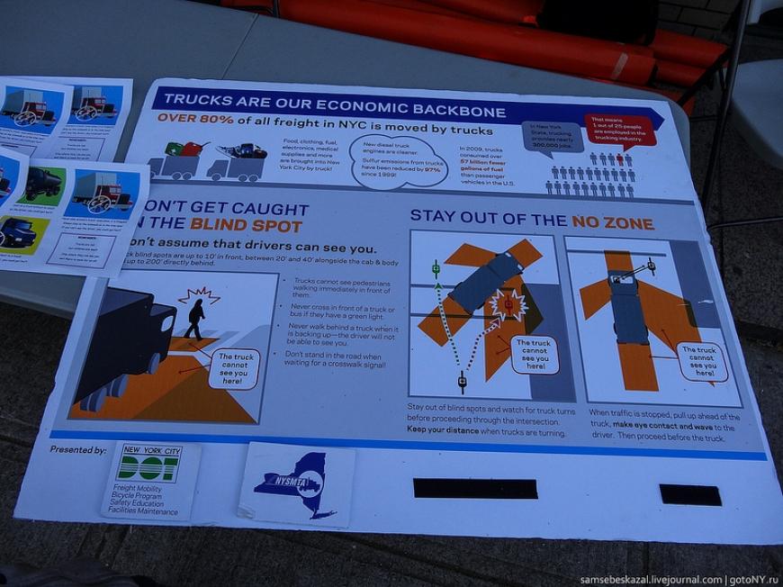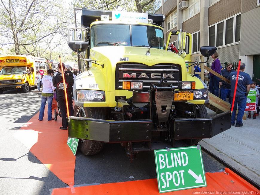 Всем желающим демонстрировали, что видит водитель грузовика и где у него мертвые зоны. Рассказывали, где не надо идти или ехать на велосипеде.