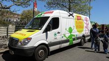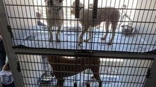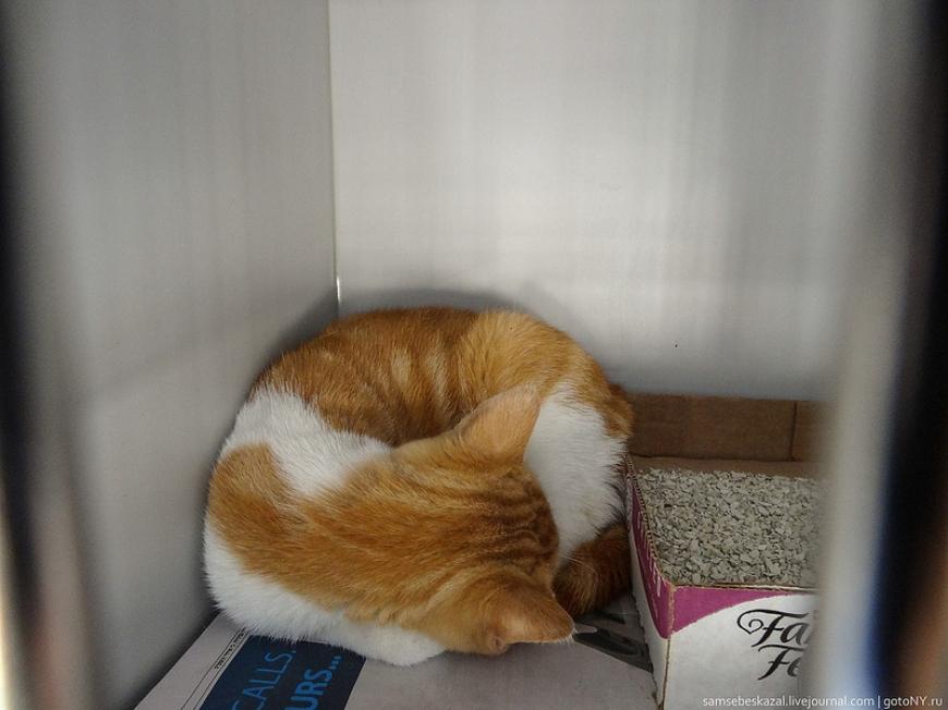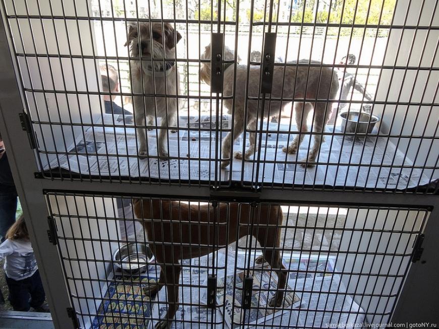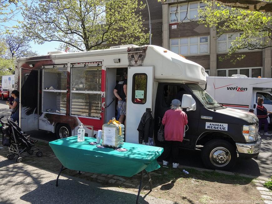 Грузовик благотворительной организации, которая занимается поиском новых семей для брошенных и бездомных животных.