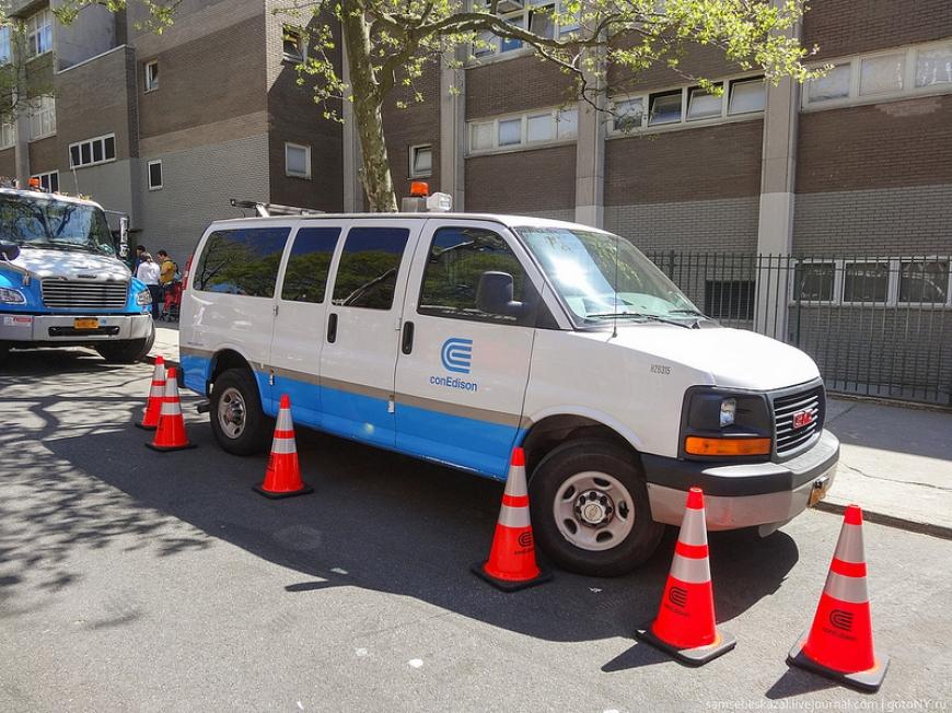 Такие грузовички телекоммуникационной компании Verizon можно встретить каждый день по всему городу. Они занимаются подключением и обслуживанием телефонных, телевизионных и интернет-каналов. Здесь рассказывали какое внутри оборудование и что они делают.