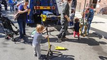К каждой машине стоит приличная очередь. Всем хочется посидеть за рулем и понажимать на кнопки. Единственная просьба со стороны организаторов, это не гудеть. Вокруг жилые дома.
