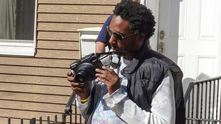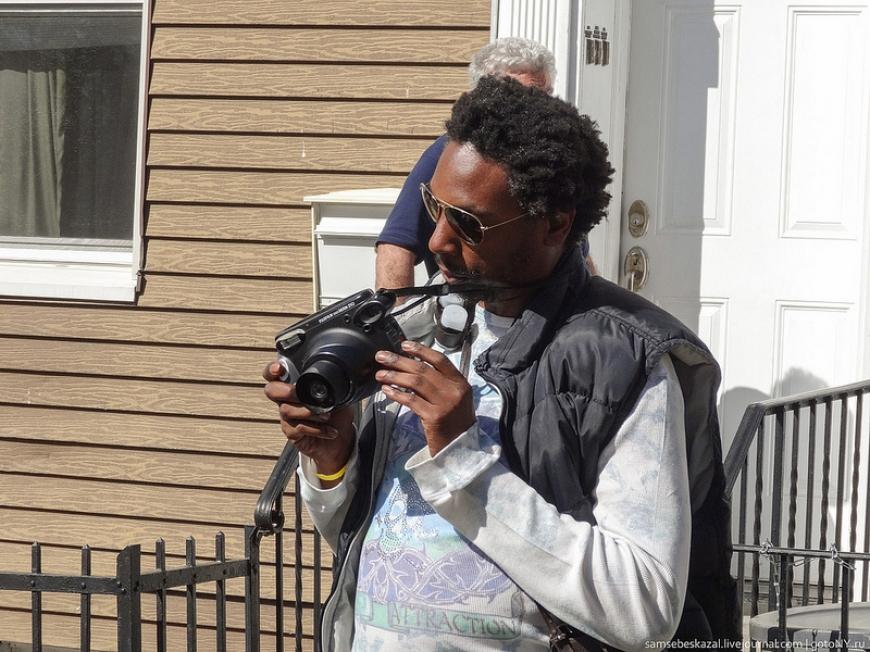 Мужик с каким-то фотоаппаратом, который сразу печатал снимки, типа старого Палароида.