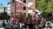 Еще одна автовышка. Эта от компании, которая занимается монтажом наружной рекламы и вывесок.