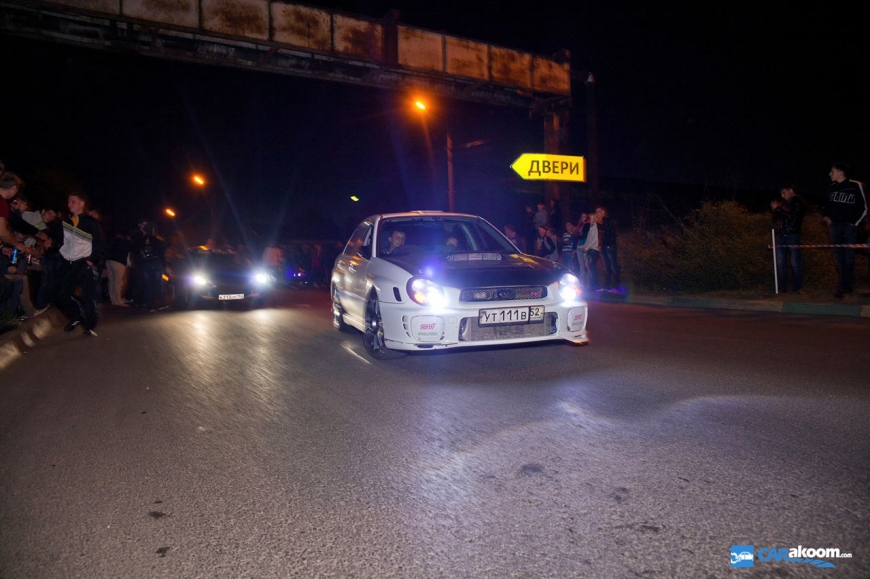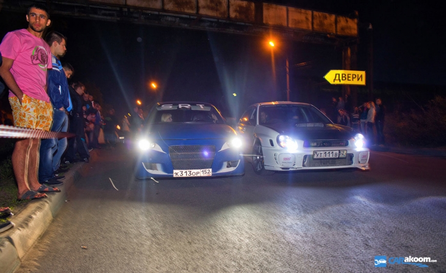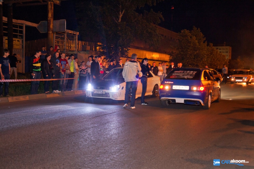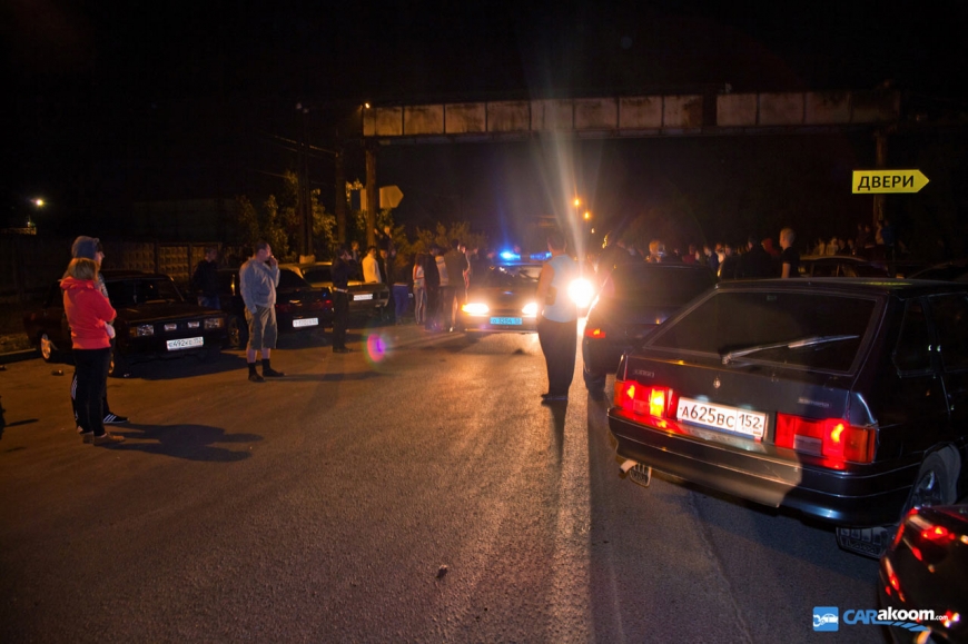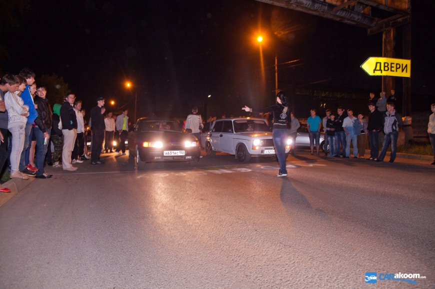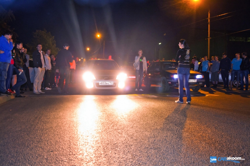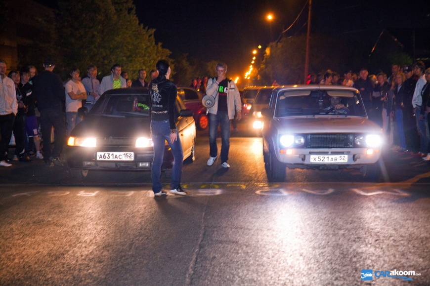В ночь с 18 на 19 мая еще один нижегородский клуб - Mad Energy Club - организовал ночной нелегальный драг. Девизом мероприятия стало: газуй до упада, жги резину что есть мочи, включай музон изо всех сил)))) Колонна с аварийками проехала через весь город до места старта.