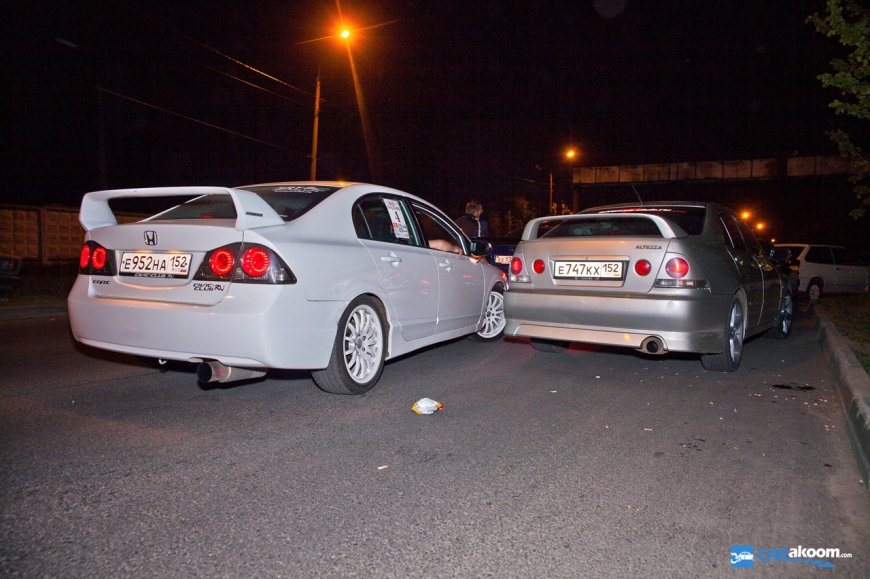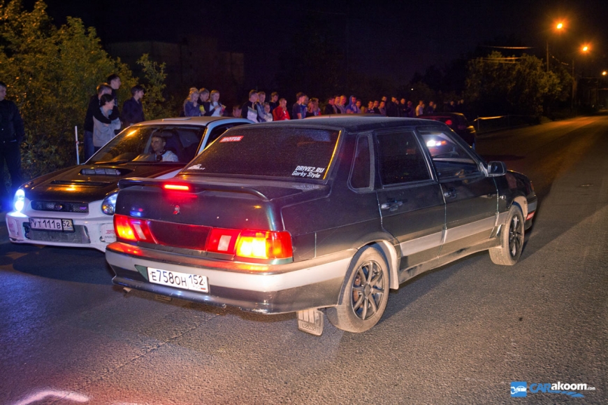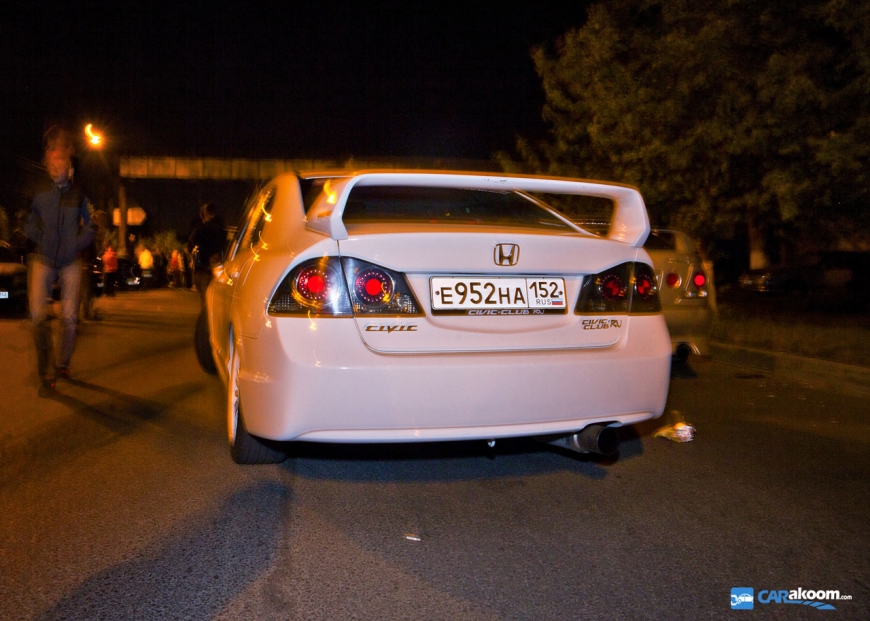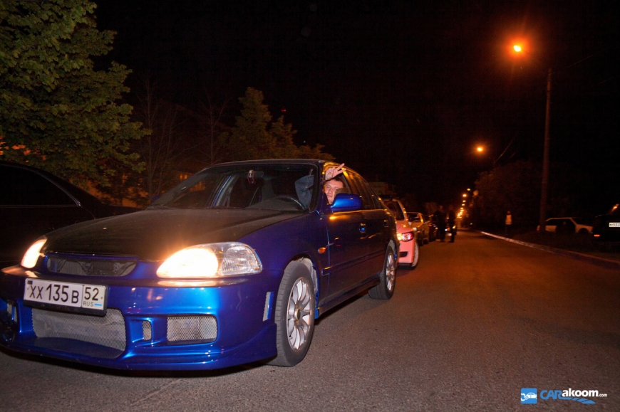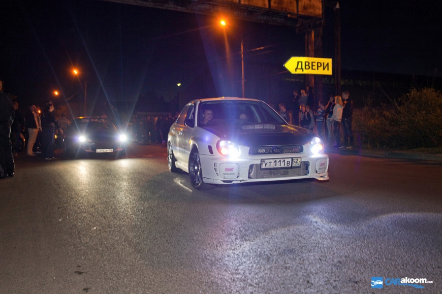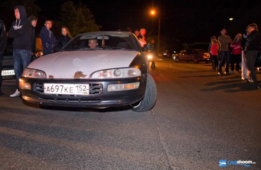 В ночь с 18 на 19 мая еще один нижегородский клуб - Mad Energy Club - организовал ночной нелегальный драг. Девизом мероприятия стало: газуй до упада, жги резину что есть мочи, включай музон изо всех сил)))) Колонна с аварийками проехала через весь город до места старта.