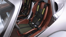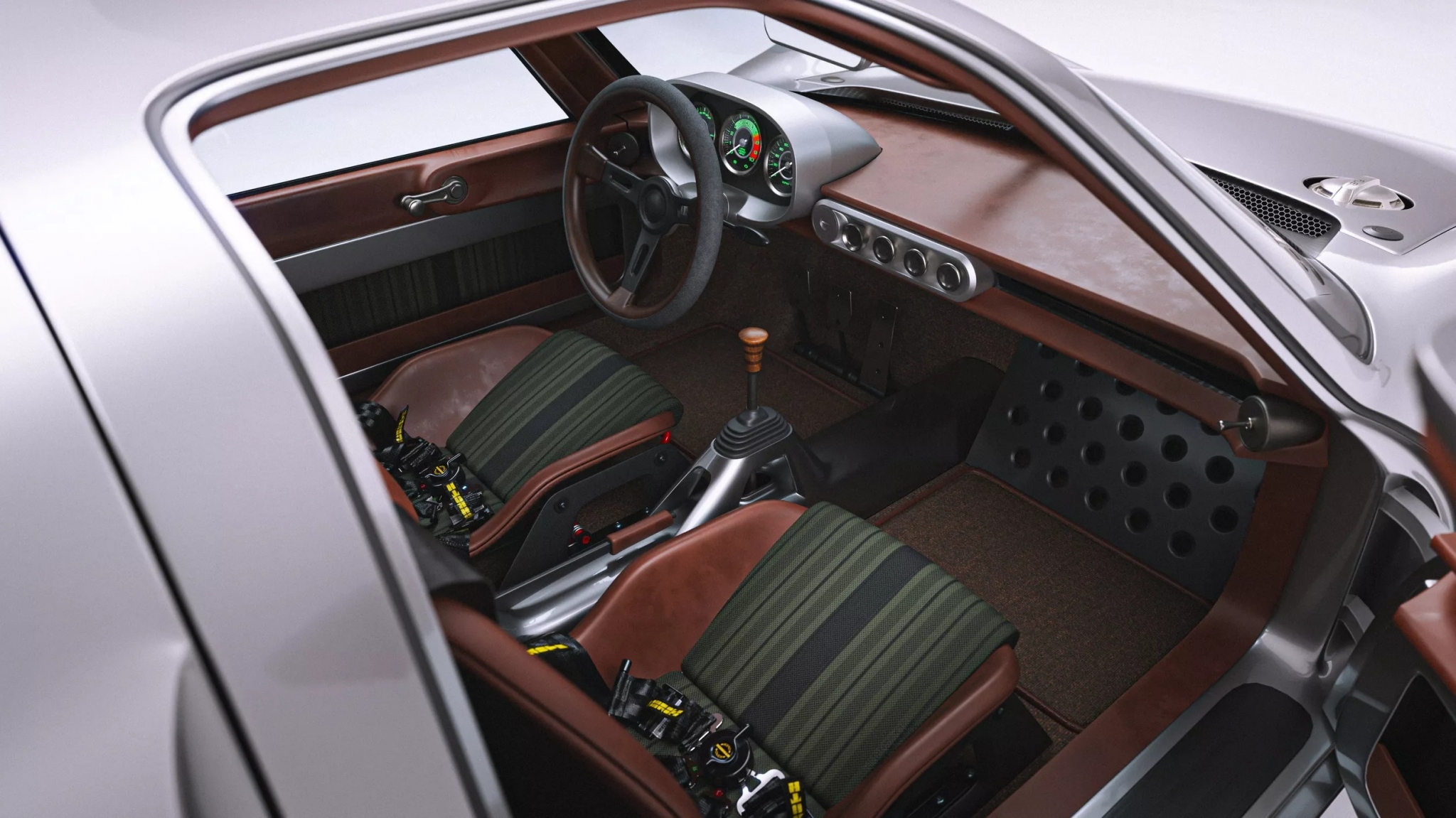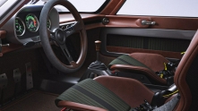 Двери открываются вместе с частью крыши, что облегчает посадку в двухместный салон. Интерьер порадует поклонников аналоговой эпохи — здесь минималистичная панель, ретро-приборы и сочетание кожи с титаном.