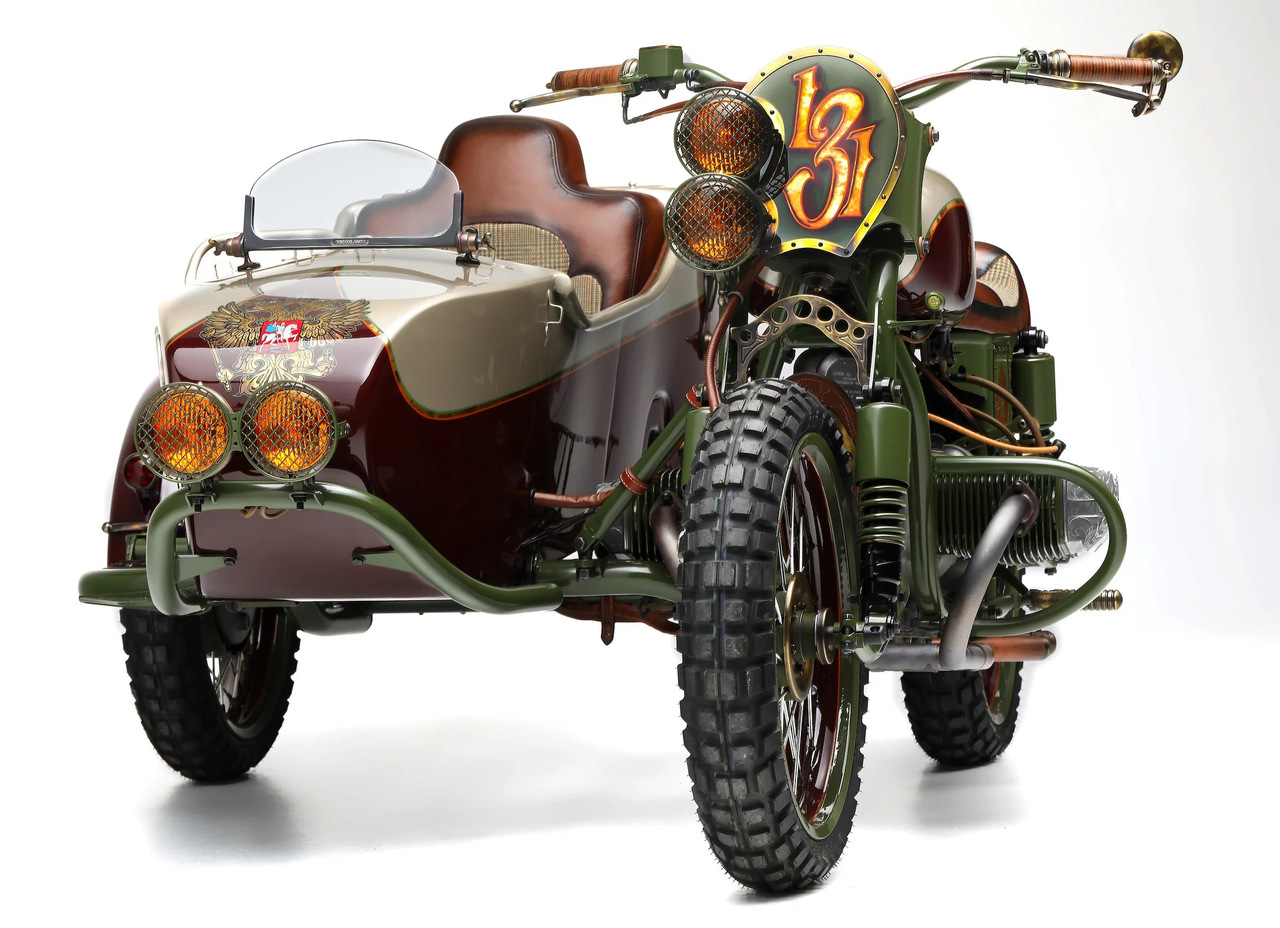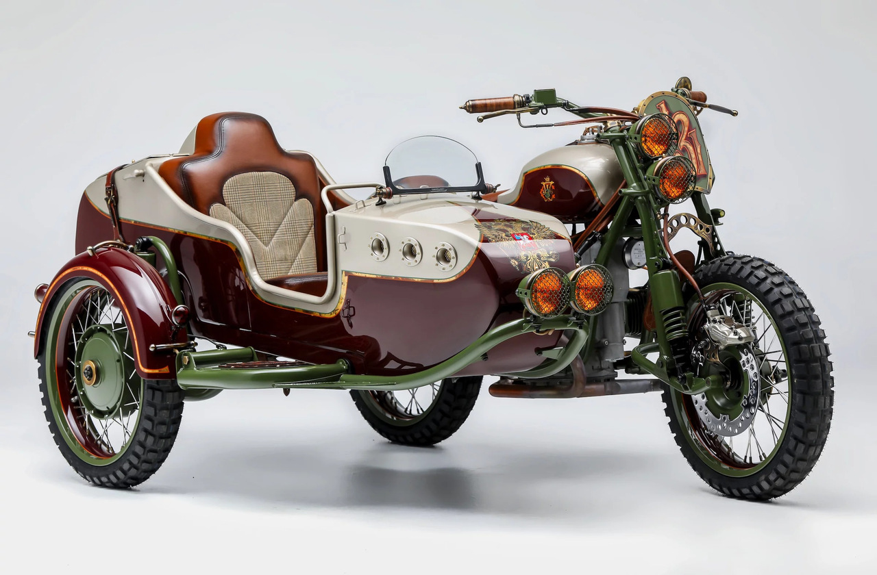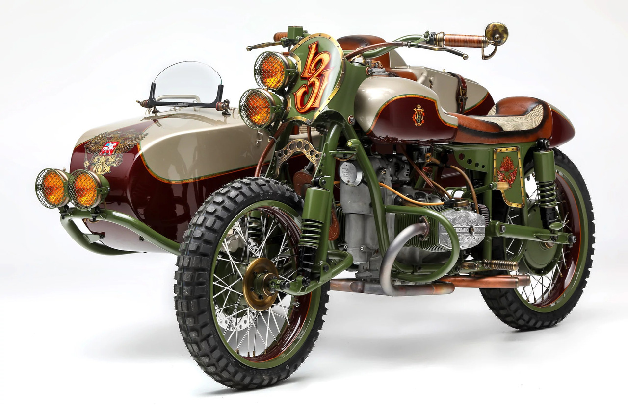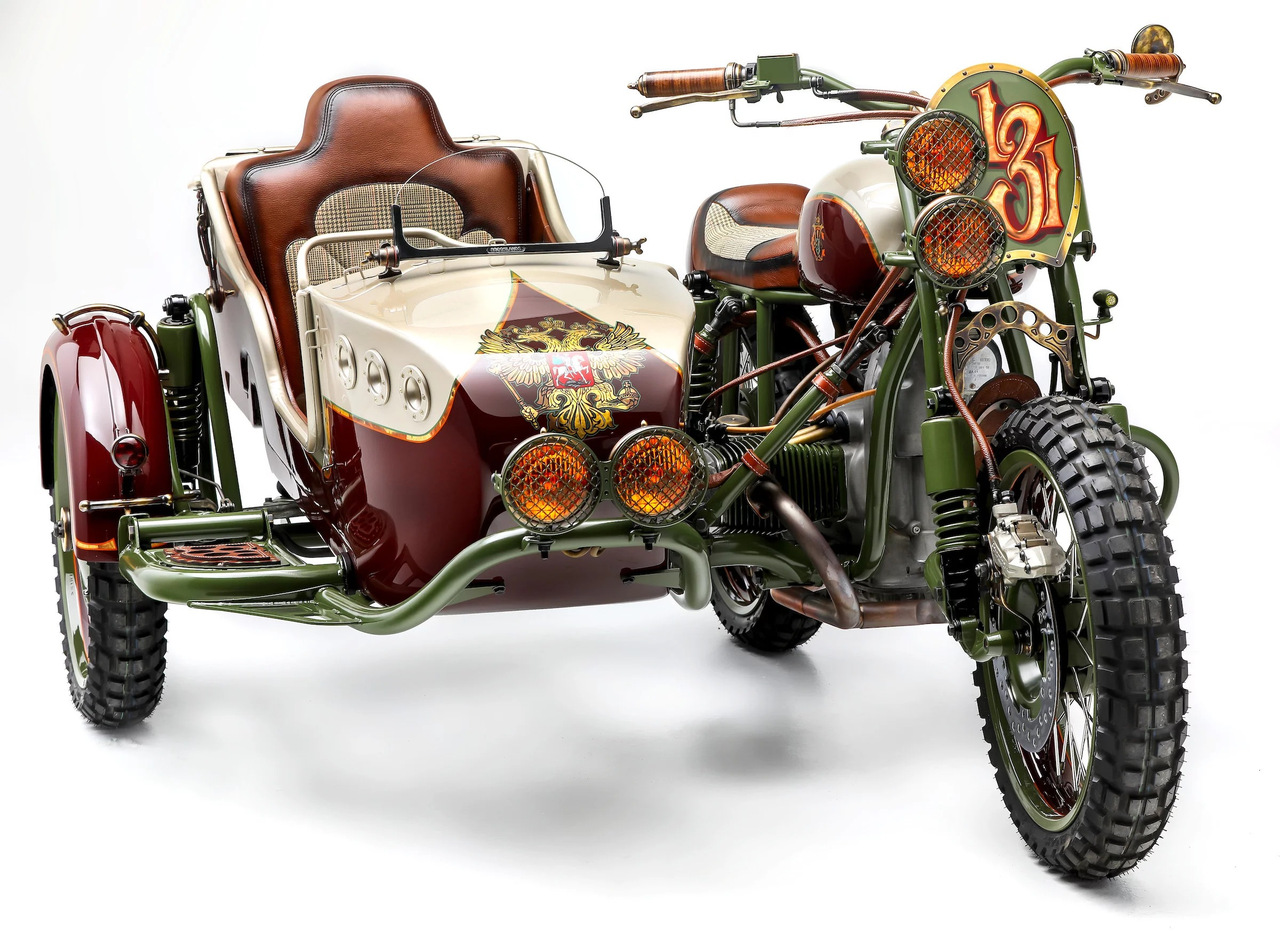 Необычный кастом на базе нашего родного мотоцикла Урал с коляской был создан компанией Le Mani Moto. Свою работу они назвали «Из России с любовью» в качестве отсылки на одноименный фильм о Джеймсе Бонде с Шоном Коннери в главной роли.