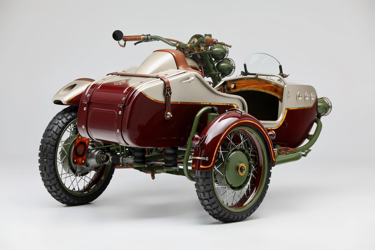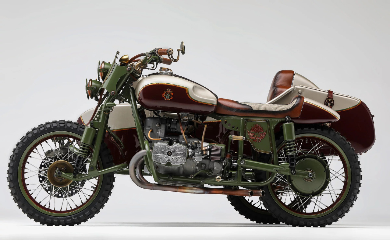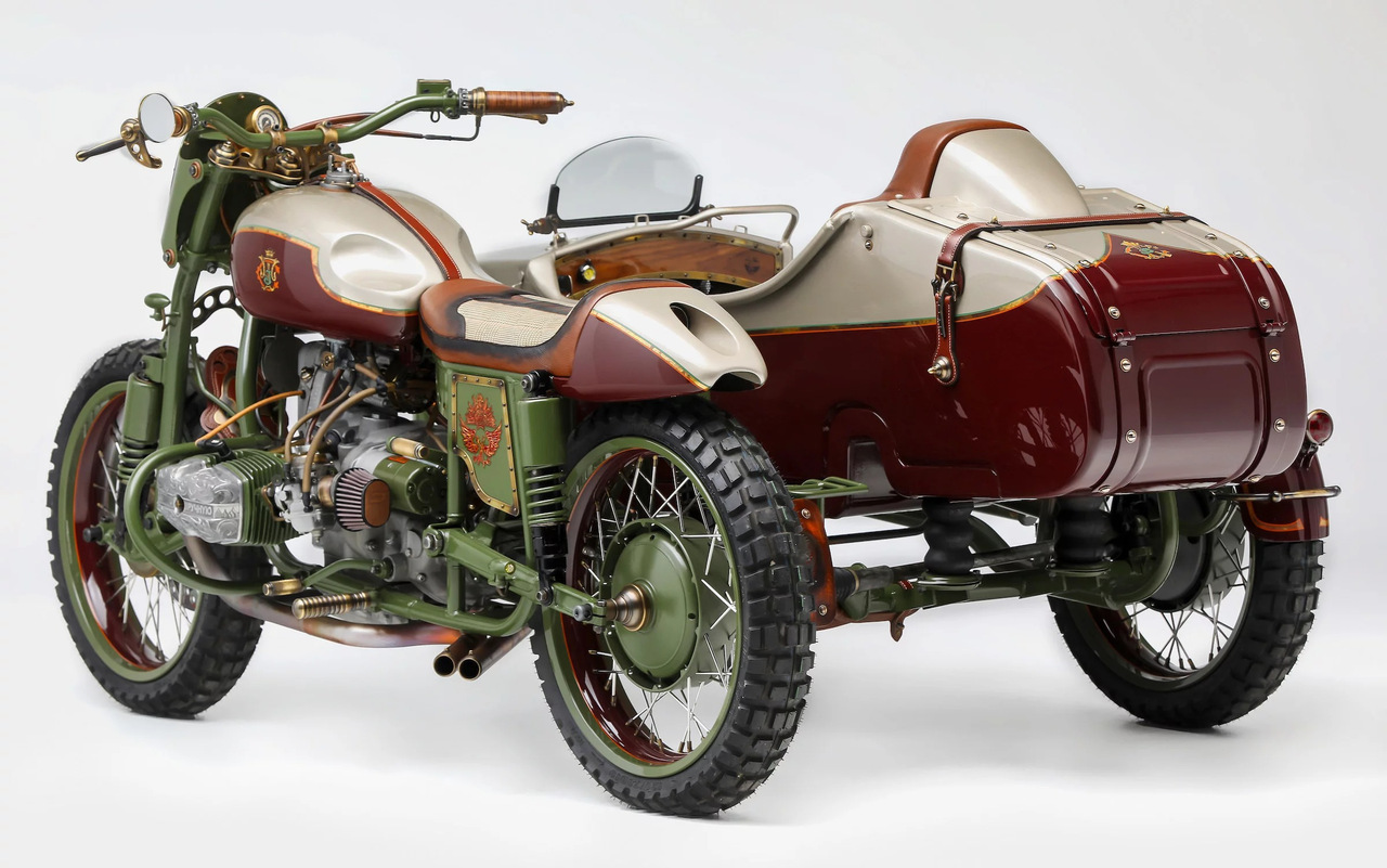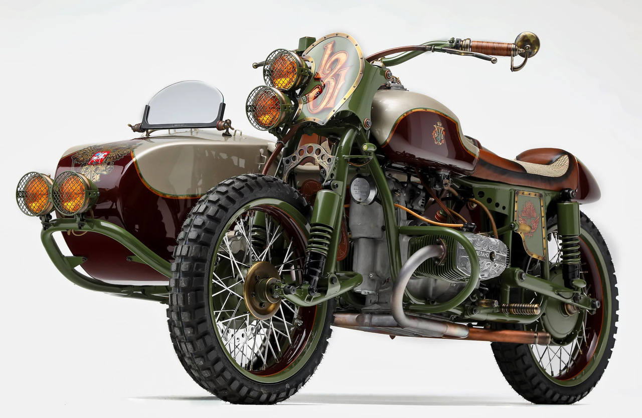 Необычный кастом на базе нашего родного мотоцикла Урал с коляской был создан компанией Le Mani Moto. Свою работу они назвали «Из России с любовью» в качестве отсылки на одноименный фильм о Джеймсе Бонде с Шоном Коннери в главной роли.