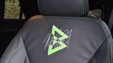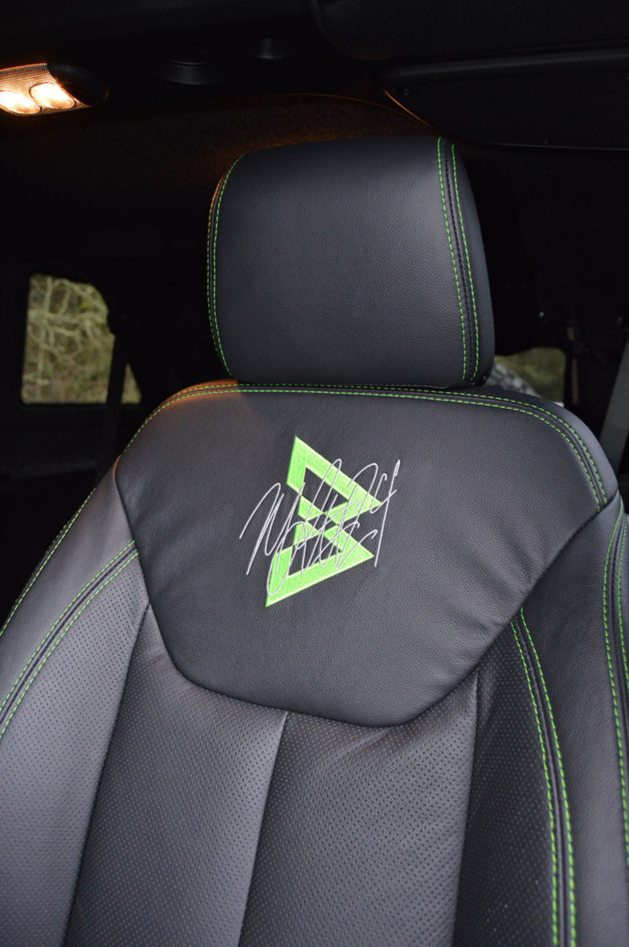 Внутри установлены кастомные кожаные кресла с логотипом Beast Mode и подписями Маршона по всему салону.