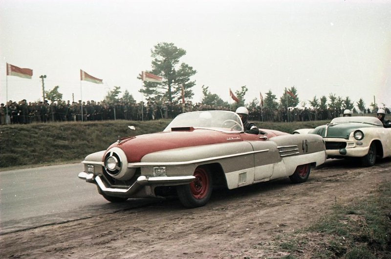Вне конкурса участвовал несуразный гоночный автомобиль «Минск», созданный в экспериментальном цеху МАЗа. Он был оснащен самодельным открытым кузовом и двигателем «Москвич-402». На фотографии ниже он стоит первым в ряду.