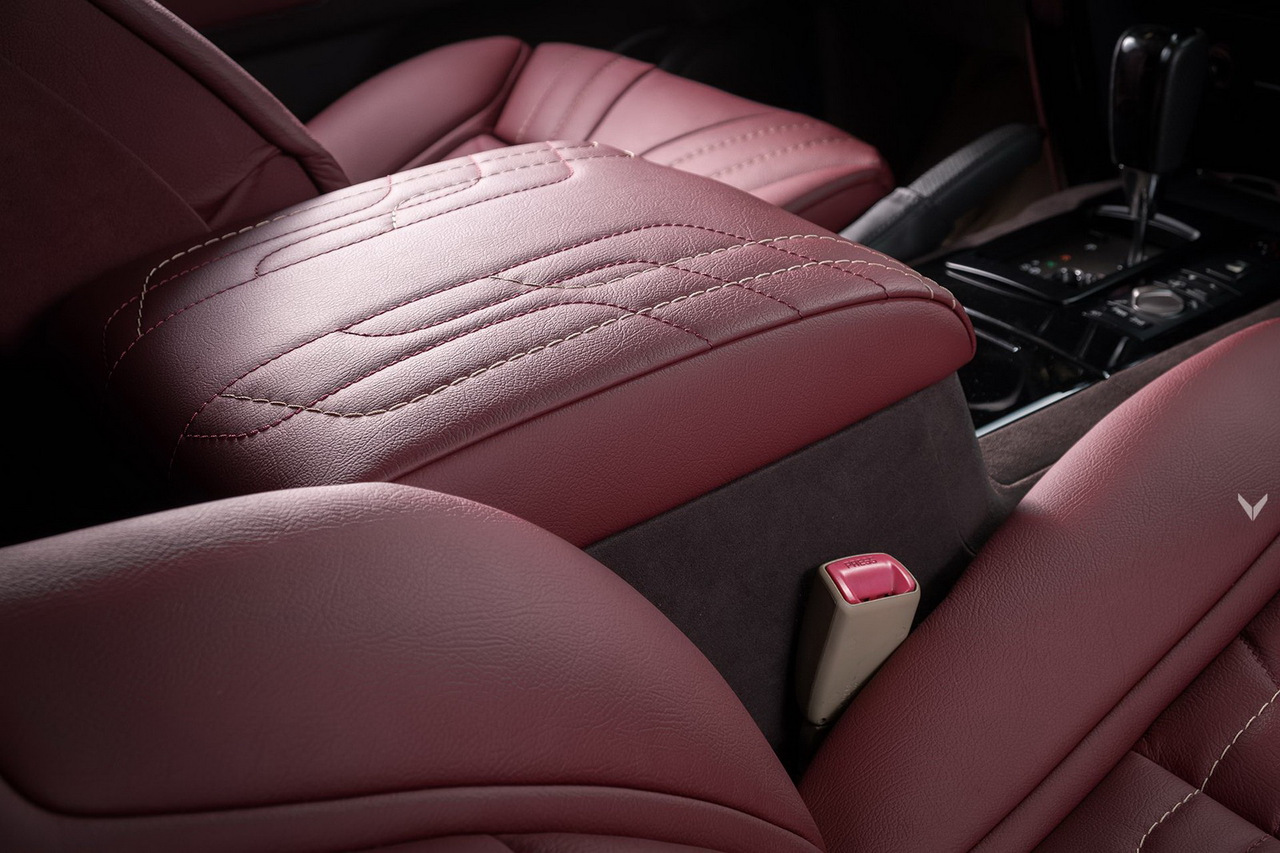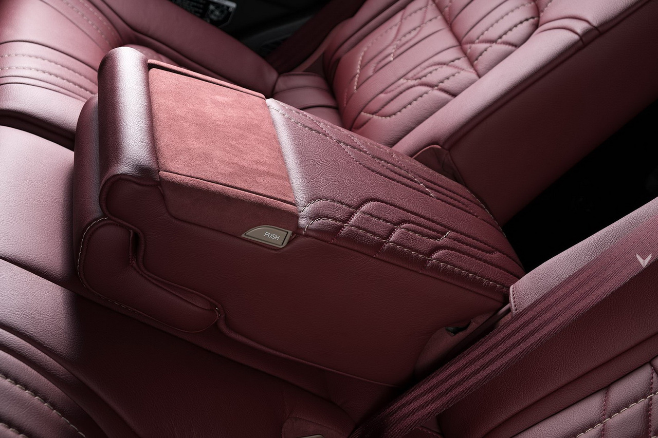 Оригинальные сиденья были безжалостно выброшены, а их место заняли кресла от BMW 5-серии поколения E60. Их обшили сочетанием красной кожи и алькантары и не забыли про инициалы владельца спереди и кожаные кармашки сзади.