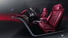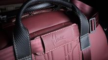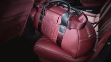 Рулевое колесо обшили черной кожей. Отдельной фишкой компании Vilner и конкретно этого проекта стала сумка, сделанная в общей стилистике с интерьером. Она сшита из красной кожи с ручками из карбона и инициалами владельца.
