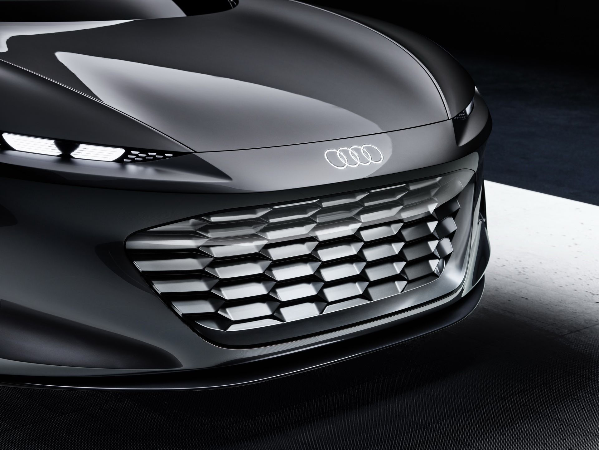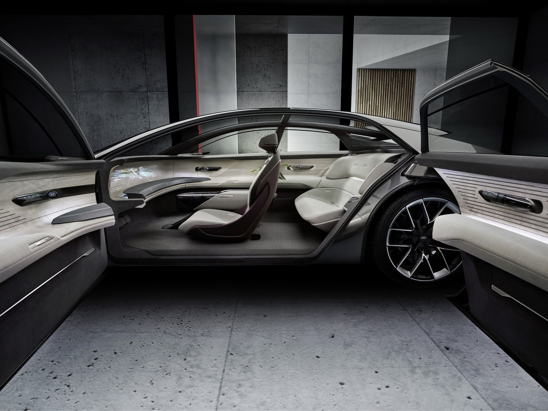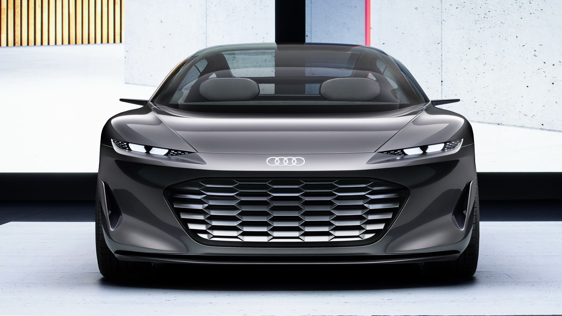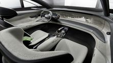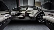 Внешне Grandsphere не похож ни на одну модель, когда-либо выпускаемую «Ауди». Купе имеет оригинальные очертания, динамичный профиль и необычную скошенную по форме корму. Но, пожалуй, самая яркая фишка экстерьера — это задние двери, распахивающиеся против хода движения. Из всех современных премиальных автомобилей такое есть только у Rolls-Royce. Еще одна особенность — это логотипы марки, выполненные в виде проецируемого изображения с подсветкой.