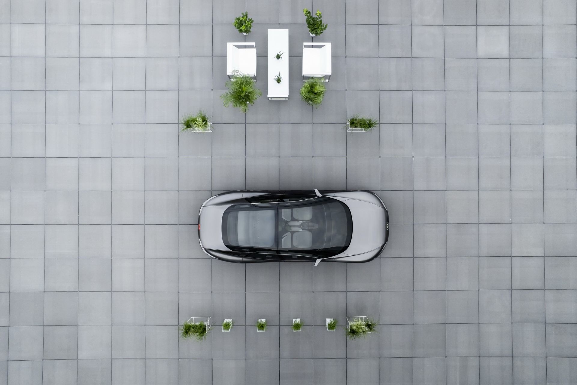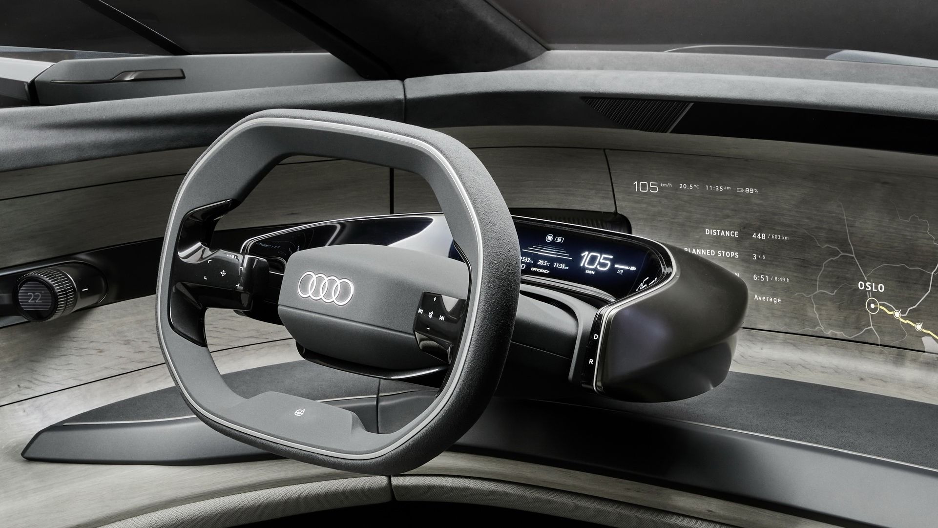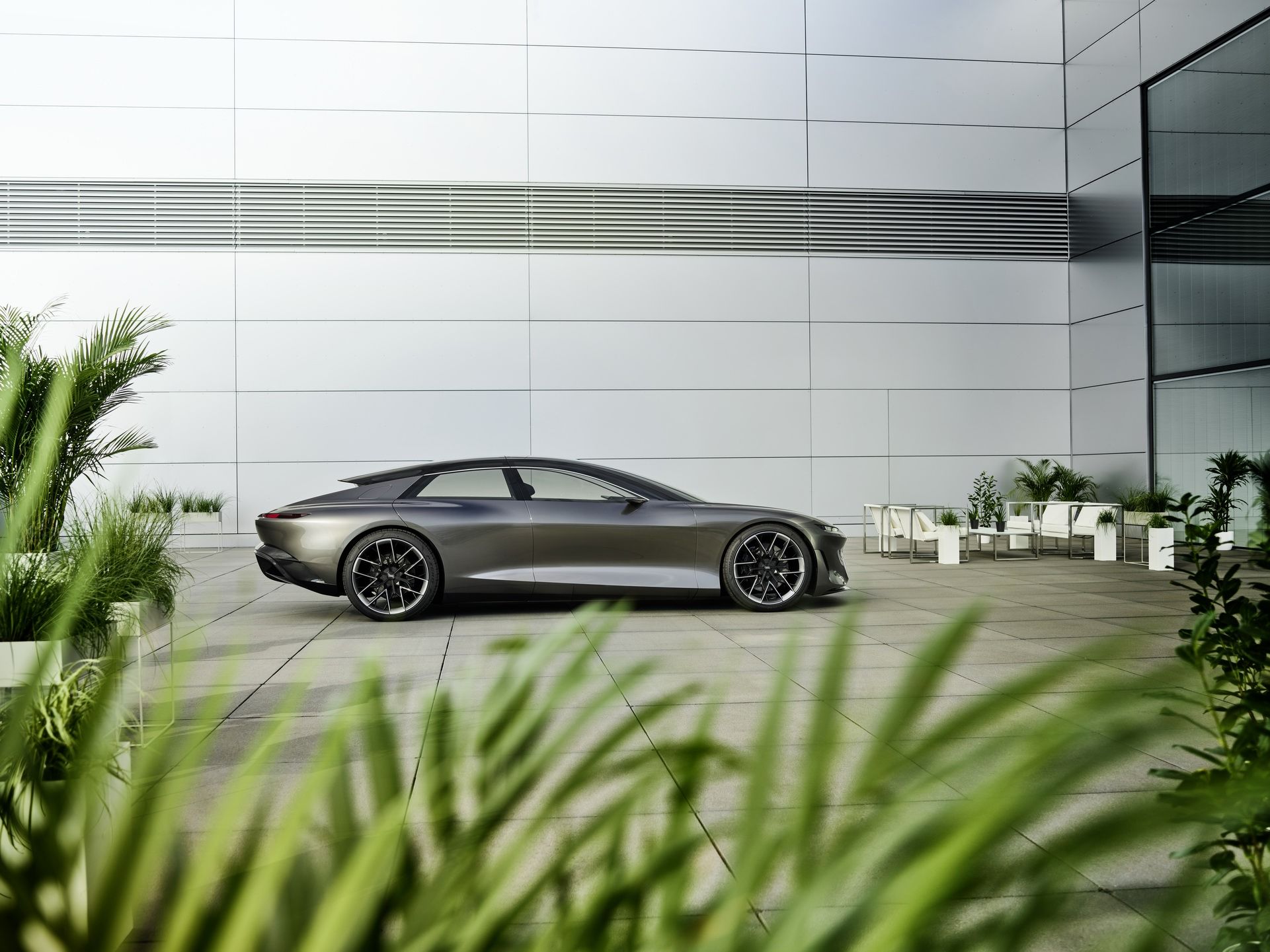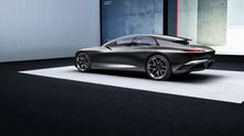 Внешне Grandsphere не похож ни на одну модель, когда-либо выпускаемую «Ауди». Купе имеет оригинальные очертания, динамичный профиль и необычную скошенную по форме корму. Но, пожалуй, самая яркая фишка экстерьера — это задние двери, распахивающиеся против хода движения. Из всех современных премиальных автомобилей такое есть только у Rolls-Royce. Еще одна особенность — это логотипы марки, выполненные в виде проецируемого изображения с подсветкой.