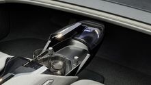 Спереди отсутствуют привычные дисплеи. На их месте — деревянная панель отделки, на которую проецируются изображения. Часть функций поддерживает управление жестами. Из физических органов управления остались только шайбы климат-контроля на дверных картах.