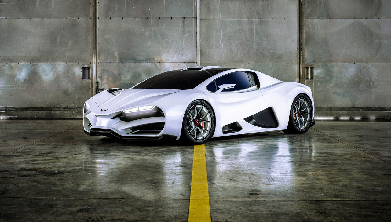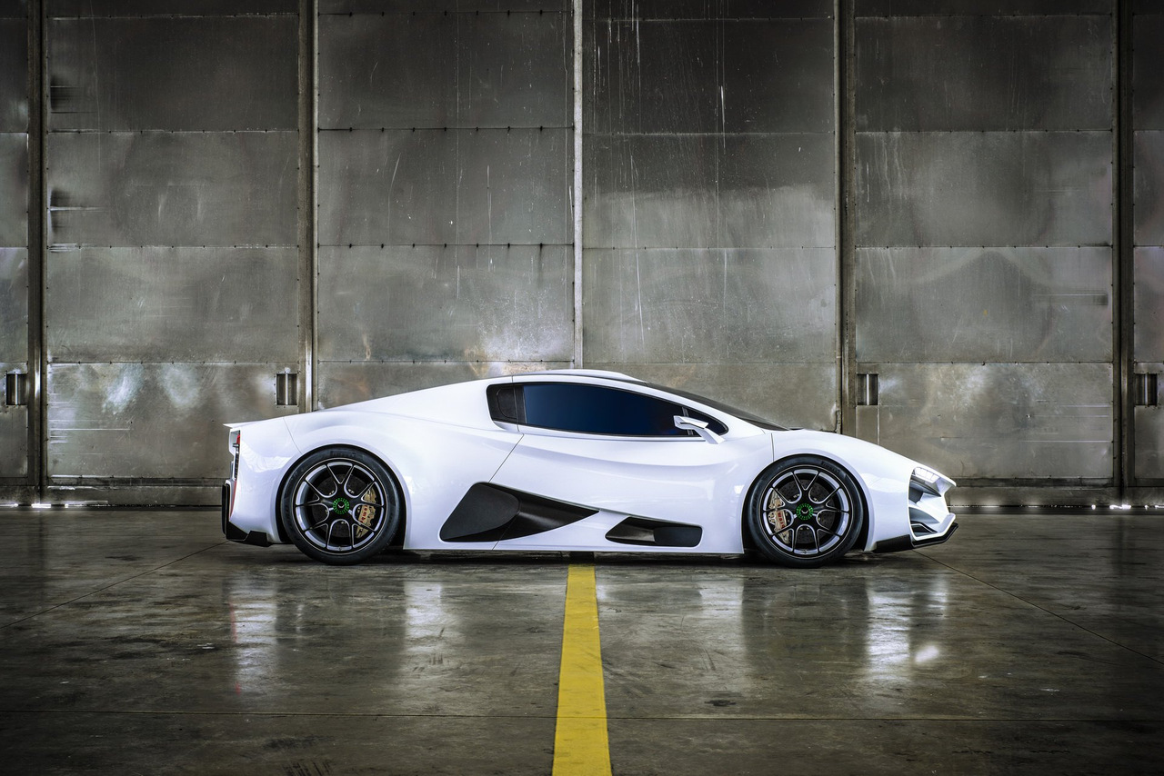 Гиперкар с очень агрессивной внешностью оснащен 6-литровым V8 с четырьмя (!) турбинами. Его отдача составляет 1306 лошадиных сил и 1400 Нм крутящего момента. Всё это передается на задние колеса через 7-ступенчатую роботизированную коробку передач с двойным сцеплением.