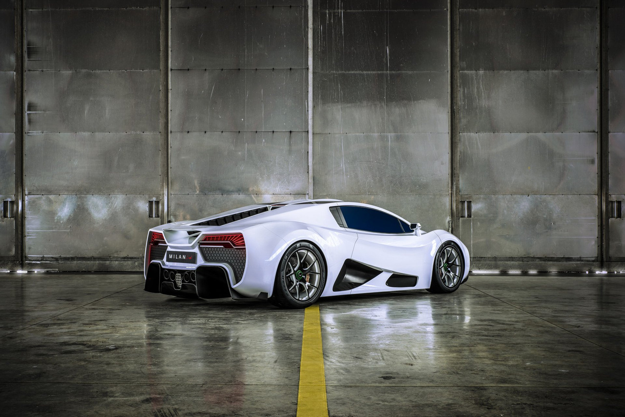 Milan Red получил активный задний спойлер, который может работать в качестве аэродинамического тормоза. Ему помогут карбоно-керамические тормозные диски от компании Brembo диаметром 390 мм спереди и 380 мм сзади. Кстати, для суперкара придумали три ездовых режима с говорящими названиями ― Glide, Hunt и Attack. Кованые алюминиевые колёса обуты в шины размерностью 265/35 R20 на передней оси и 325/30 R21 на задней.