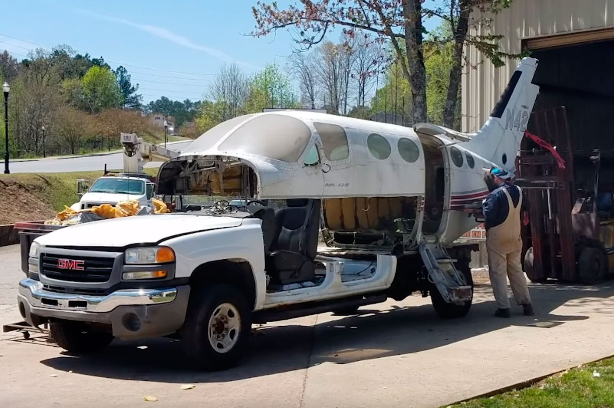 Автомобильный фанат Марк Рей из города Росвелл, штат Джорджия, США, любит создавать нелепые автопроекты, чтобы вызывать улыбку у всех, кто их видит. Совсем недавно он завершил работы над автомобилем-самолетом, созданном на шасси пикапа GMC Sierra 2500.