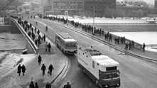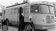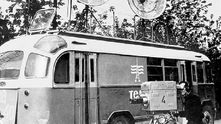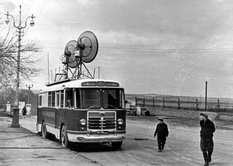 Первая передвижная телевизионная станция ПТС-52 на выезде. 1958 год.