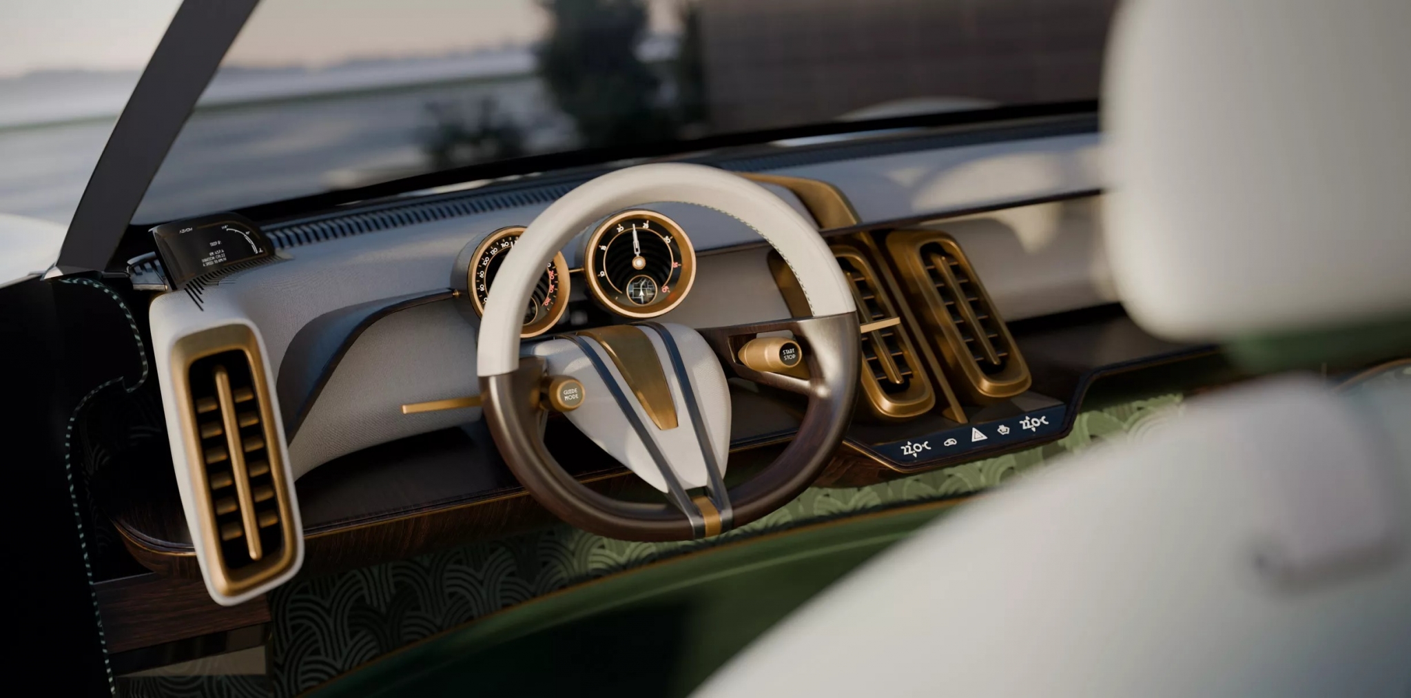 Концепт получил название L’Epoque, и лучше всего воспринимать его как катящийся на колёсах сон наяву. Вдохновлённый автомобилями 1920–1930-х годов, он переосмысливает драматизм той эпохи с помощью современной электрической техники и нарочито гипертрофированных пропорций.