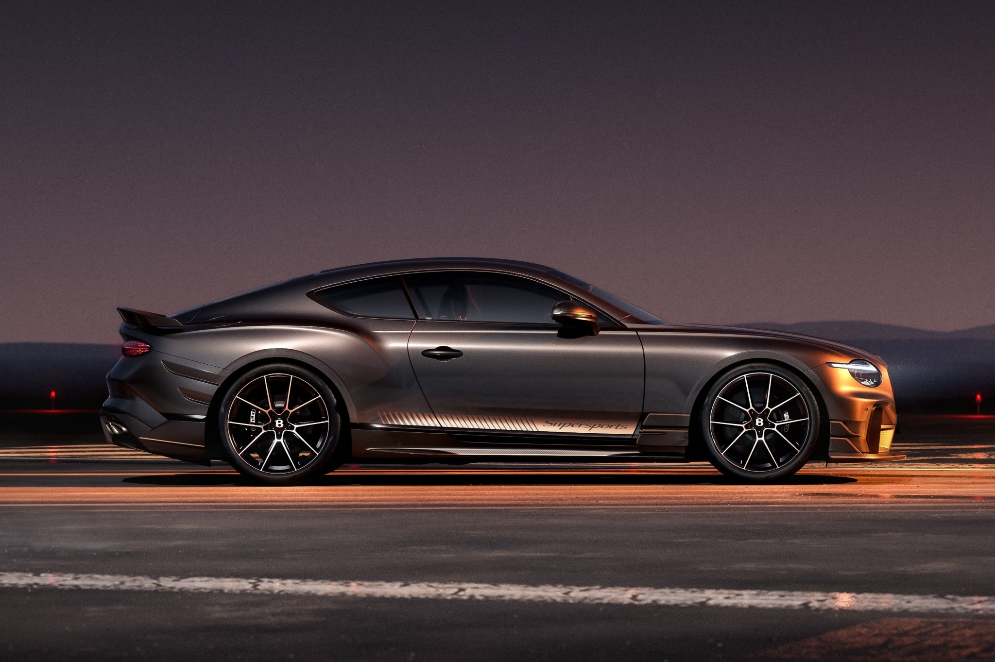 Вместо того чтобы заниматься облегчением отдельных элементов, инженеры Bentley просто удалили ряд деталей — особенно из трансмиссии. В то время как другие модели Continental GT оснащены полным приводом и гибридной установкой, Supersports простой: только двигатель внутреннего сгорания, и мощность передаётся исключительно на задние колёса.